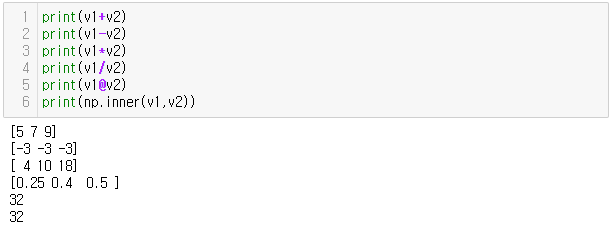 • numpy array를 쓰는 가장 큰 이유는 vector처럼 사용할 수 있기 때문입니다.