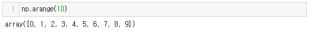 np.arange(10) # 0부터 9까지 숫자를 자동으로 생성한 array