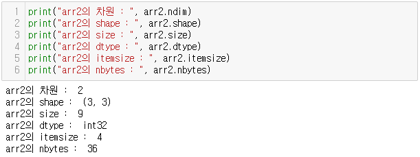 print("arr2의 차원 : ", arr2.ndim) # arr2의 차원