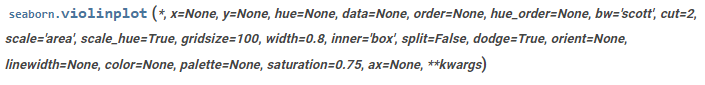 - 보통 boxplot과 함께 표시하면, 평균 근처에 데이터가 얼마나 있는지(boxplot) 전체적으로 어떻게 퍼져있는지(violinplot) 모두 확인이 가능합니다.