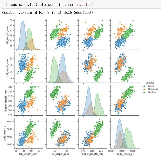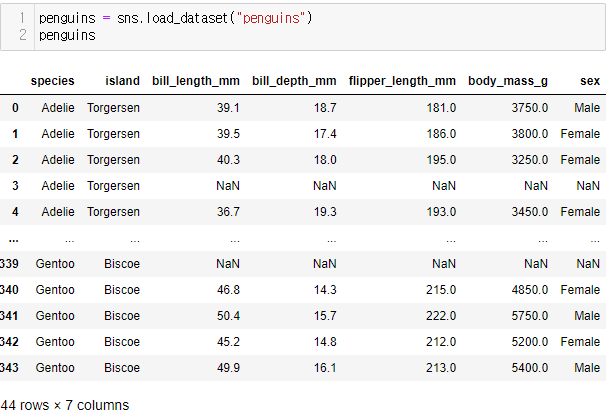 # 파이썬에서 제공하는 기본 dataset "penguins"를 시각화해 봅시다.