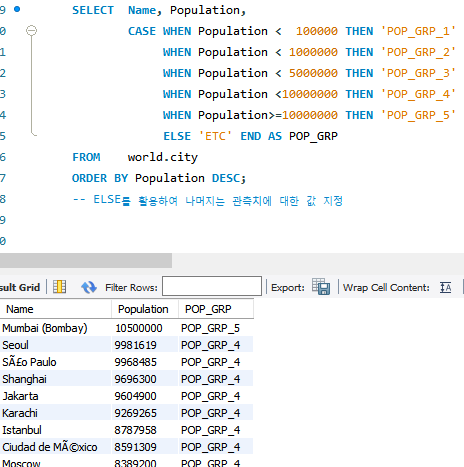 -- ELSE를 활용하여 나머지는 관측치에 대한 값 지정