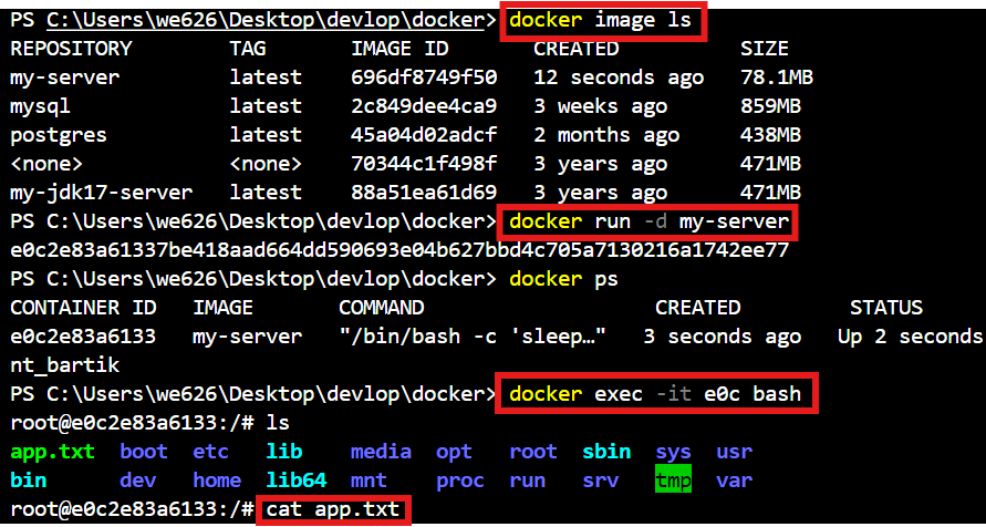 - docker exec -it를 활용해 컨테이너 내부에 직접 들어가보기