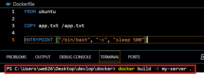 쉽게 설명하자면 ENTRYPOINT에는 미니 컴퓨터의 전원을 키고나서 실행시키고 싶은 명령어를 적으면 된다.