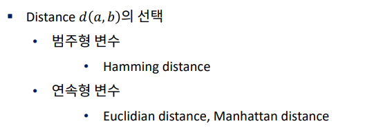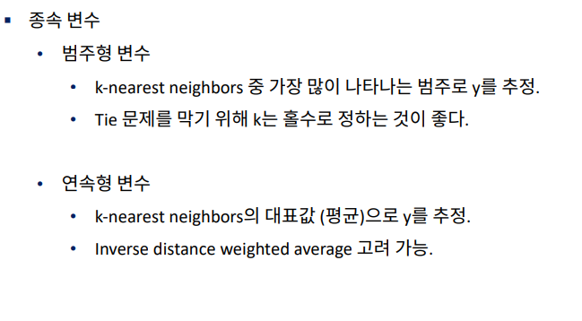 - 데이터가 주어지면 그 주변(이웃)의 데이터를 살펴본 뒤 더 많은 데이터가 포함되어 있는 범주로 분류하는 방식입니다.