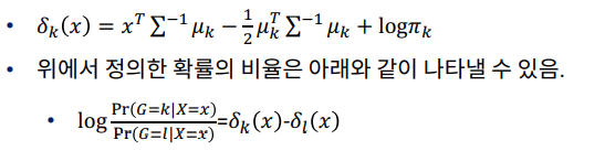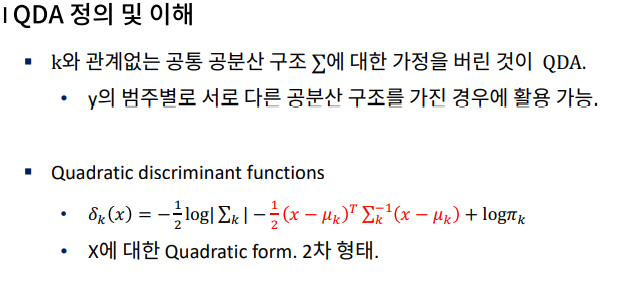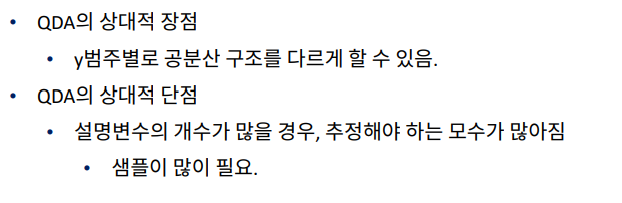 - 단점3 : y범주 사이에 공분산 구조가 다른 경우를 반영하지 못함