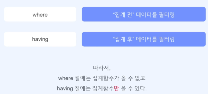 ※ GROUP BY 절에 사용된 칼럼은 SELECT 절에 사용되지 않아도 된다.